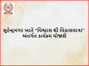 સુરેન્દ્રનગર ખાતે “વિશ્વાસ થી વિકાસયાત્રા” અંતર્ગત કાર્યક્રમ યોજાશે